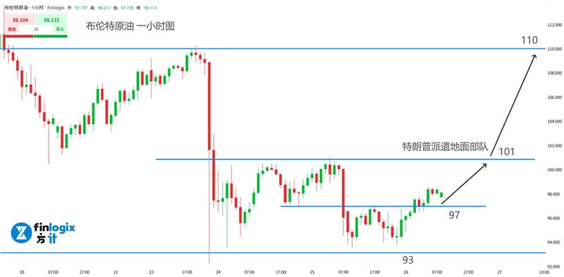 技术面:100均线向下,油价大幅度回调,市场对于特朗普停火的宣言过于乐观,这场战争已经不再特朗普掌控之中了。考虑到情绪面的不确定性,多单入场需要设好止损。在没有突破101颈线之前,保持快进快出波动操作。