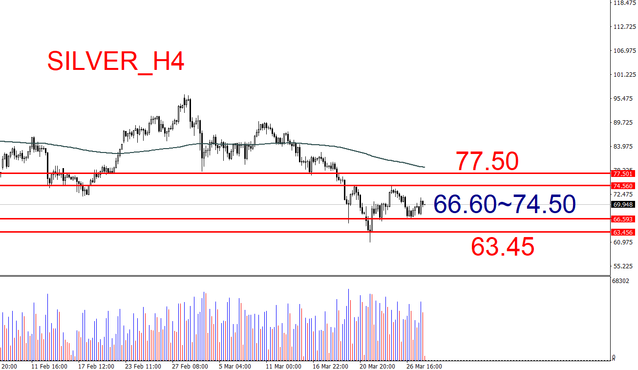 当前价格位于66.60~74.50区间,建议采取区间突破操作方式: