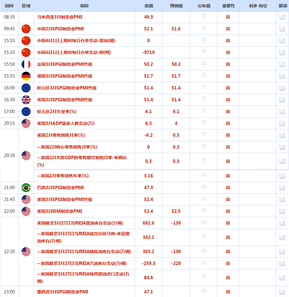 CWG Markets市场资讯2026年4月1日(周三)