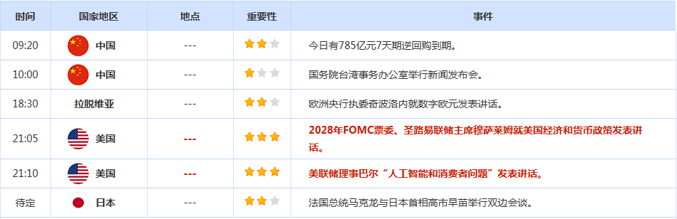 前日公布数据与消息: