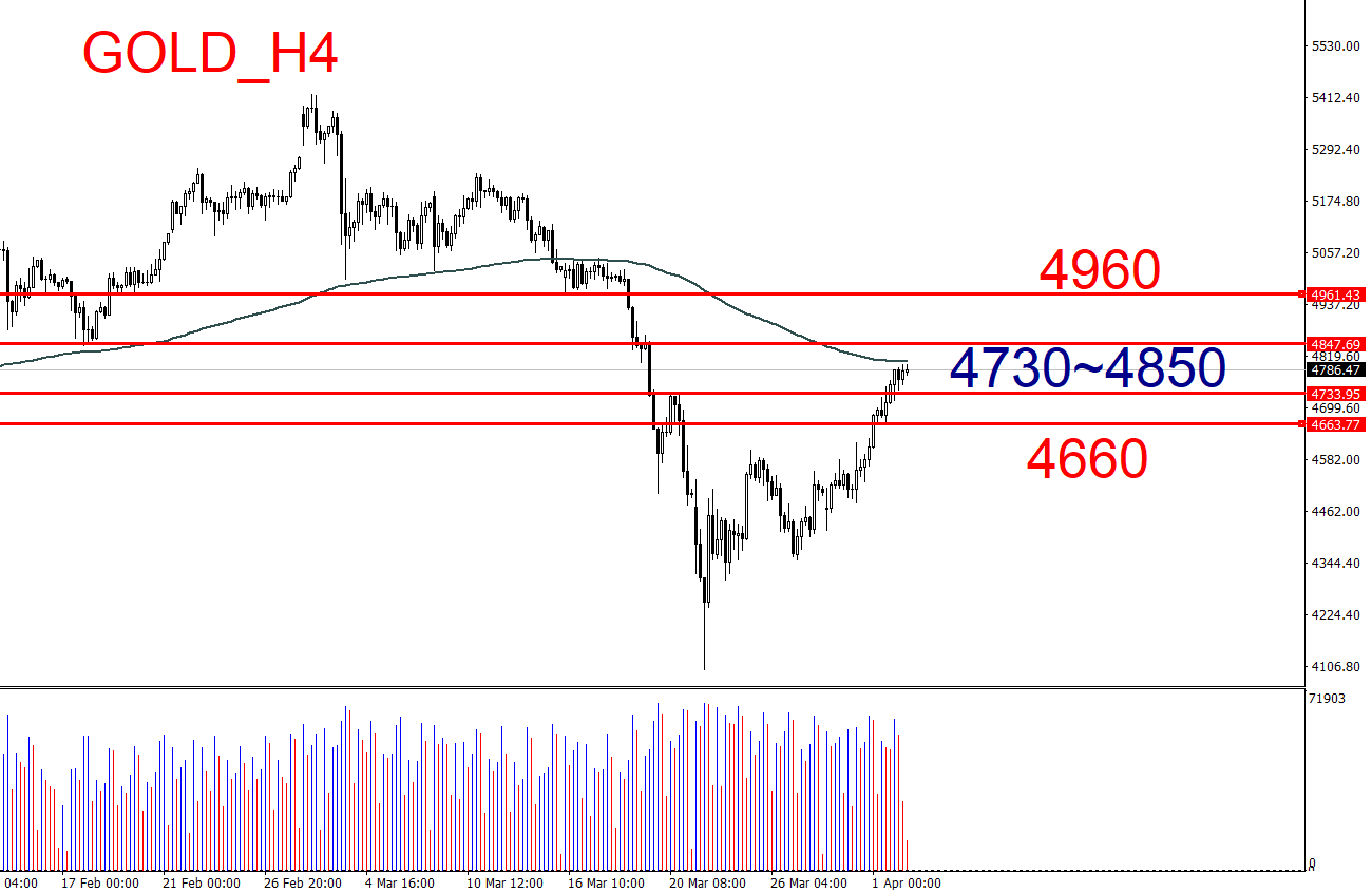 价格触及 4730并反弹可尝试多单,目标看向区间上沿(4850)。