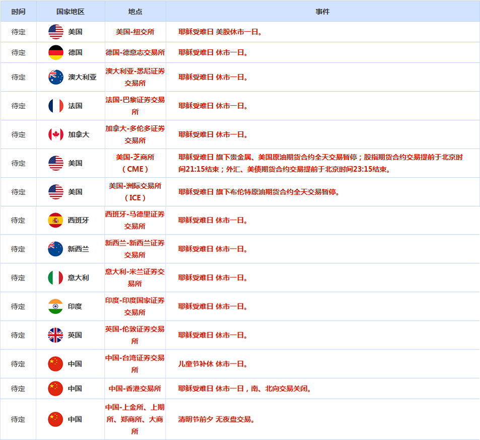 黄金:耶稣受难日休市一日。