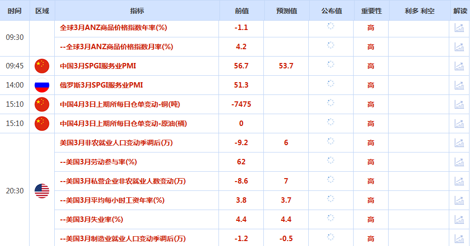 市场同时关注周五美国非农就业报告,预计3月新增就业岗位6万个。
