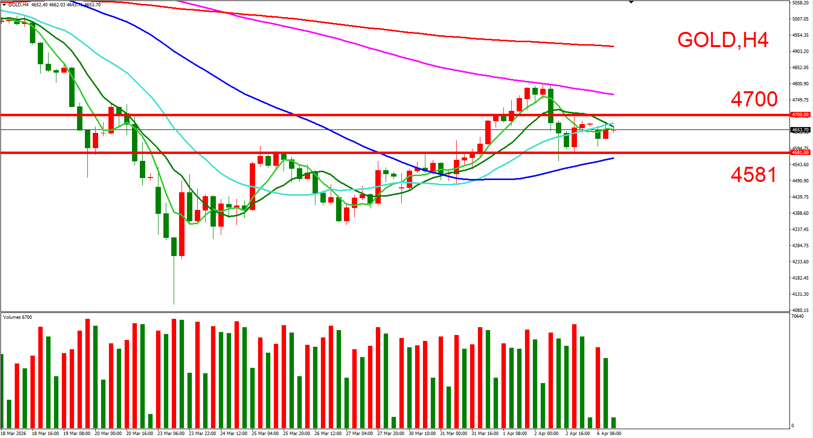 短线可以(4700,4/02晚间大量高位)与(4581,4/02晚间大量低位) 来作为压力与支撑位参考,用以判断低接或突破进场机会。