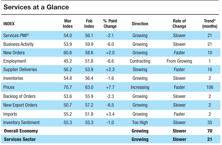 昨日美国3月ISM非制造业物价指数录得70.7,价格增长压力正在逐渐浮现。