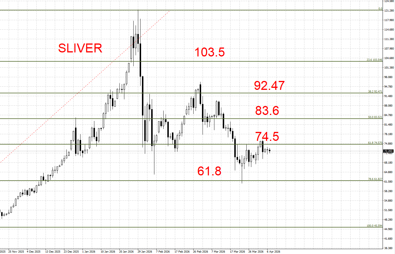 下方支撑:74.5 / 61.8 美元/盎司