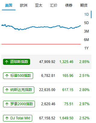 尽管美伊同意停火两周,但停火局面脆弱,伊朗和以色列恢复敌对行动。现货黄金盘中一度站上4850美元关口,在攀升至近三周高点后回吐日内大部分涨幅,最终收涨0.29%,报4719.35美元/盎司;现货白银最终收涨1.5%,报74.09美元/盎司。昨日美国三大股指集体收涨,道指收涨2.85%,标普500指数涨2.5%,纳指涨2.8%。