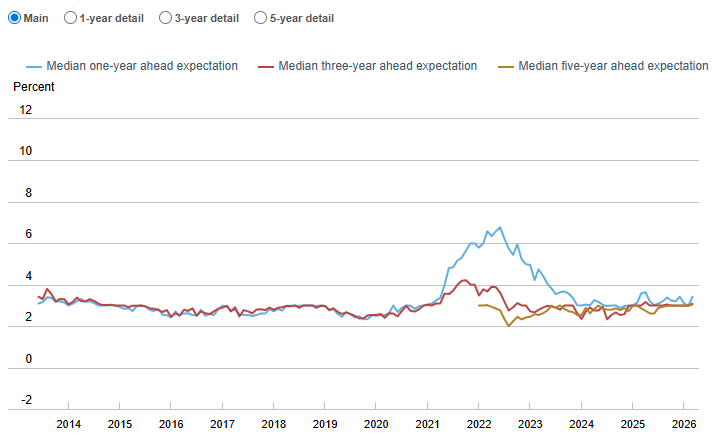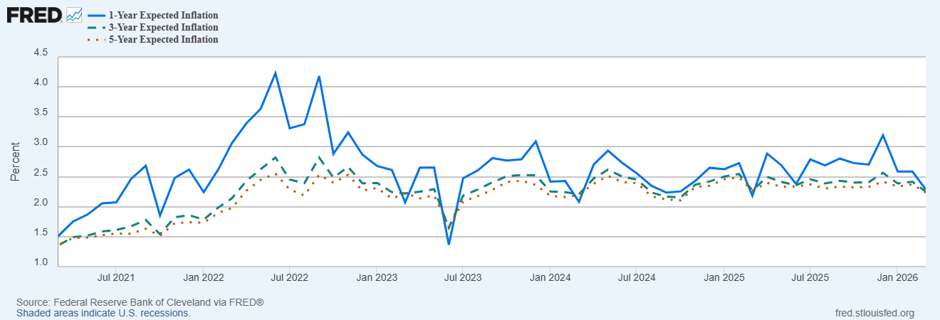 目前根据克里夫兰联储提供的针对未来一至五年通胀预期仍相对稳定。