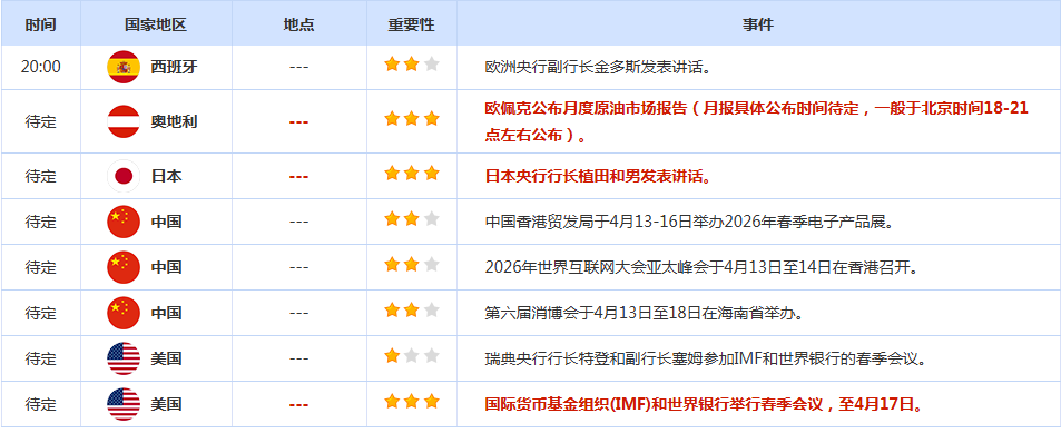 CWG Markets市场资讯2026年4月13日(周一
