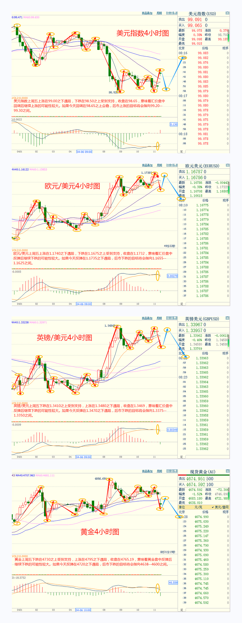 黄金:可以在4715.00---4600.00的区间上限卖出,有效破位50美元止损,目标在区间的下限。