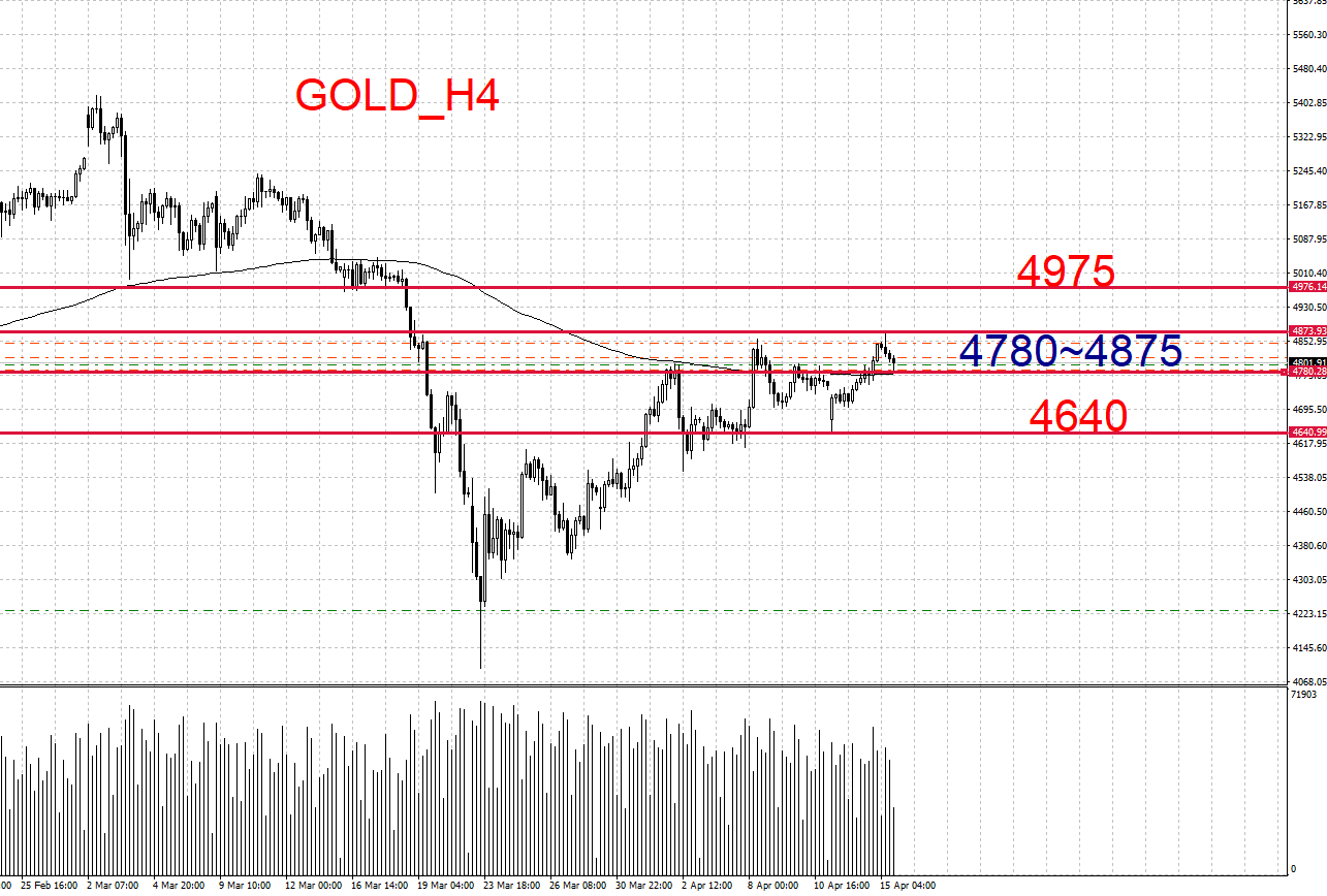 价格触及 4780并反弹可尝试多单,目标看向区间上沿(4875)。