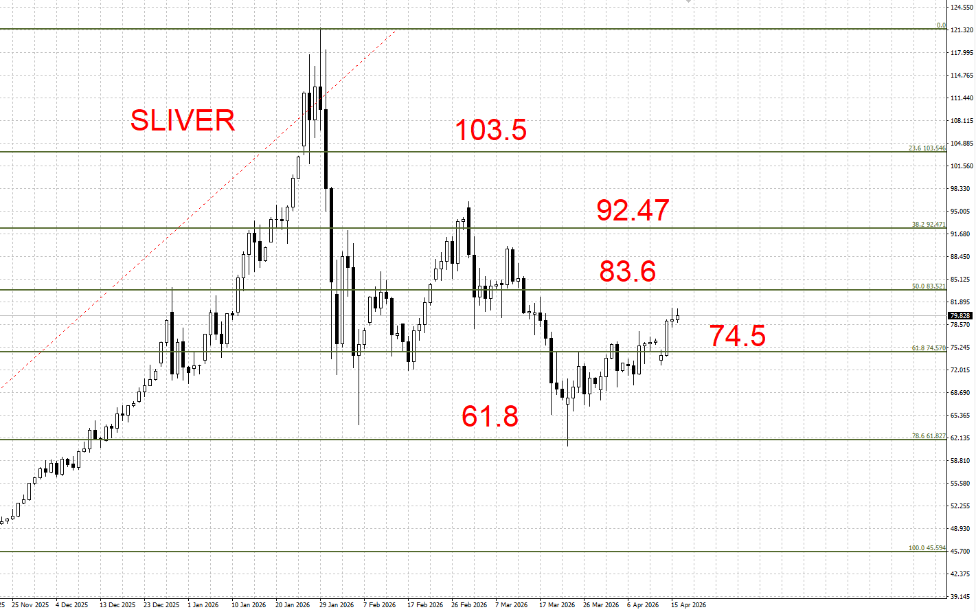 下方支撑:74.5 / 61.8 美元/盎司