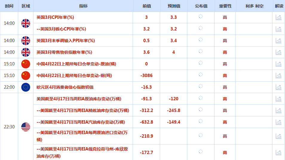 前日公布数据与消息: