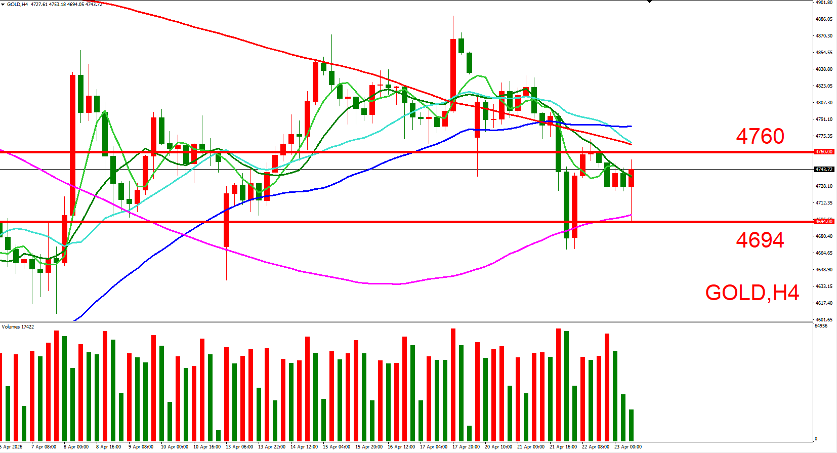 短线可以(4760,4/22大量高位)与(4694,今日下影线低位) 来作为压力与支撑位参考,用以判断低接或突破进场机会。