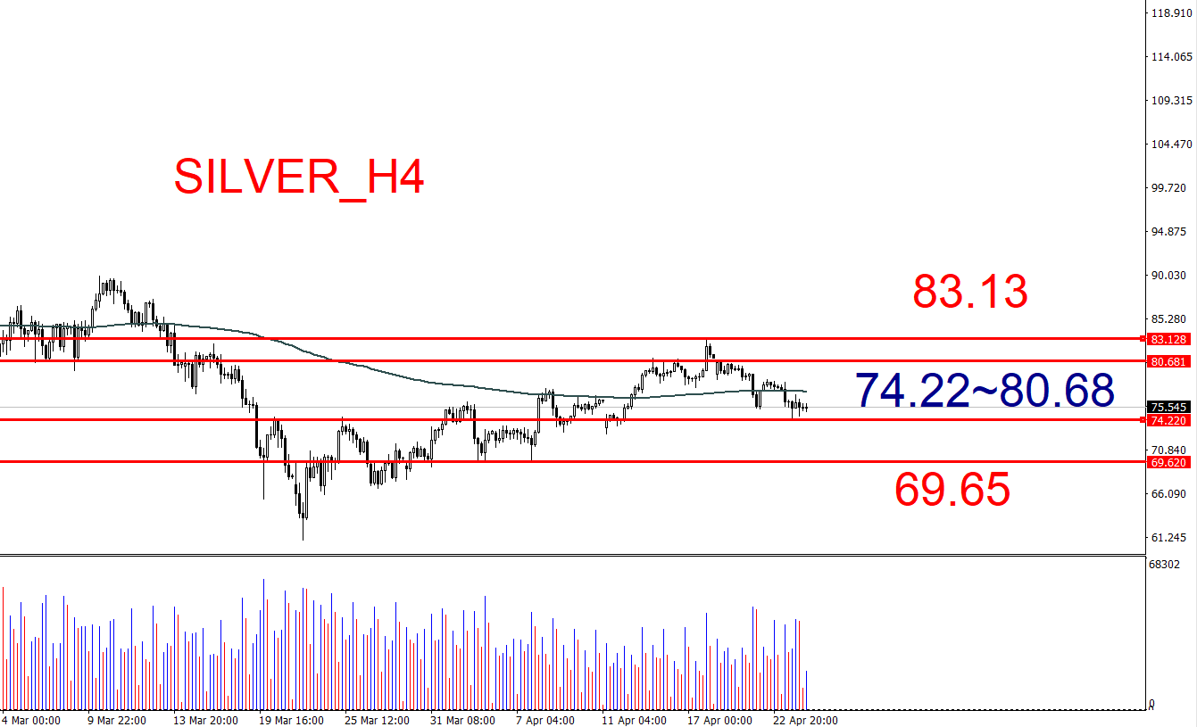 当前价格位于74.22~80.68区间,建议采取区间突破操作方式:
