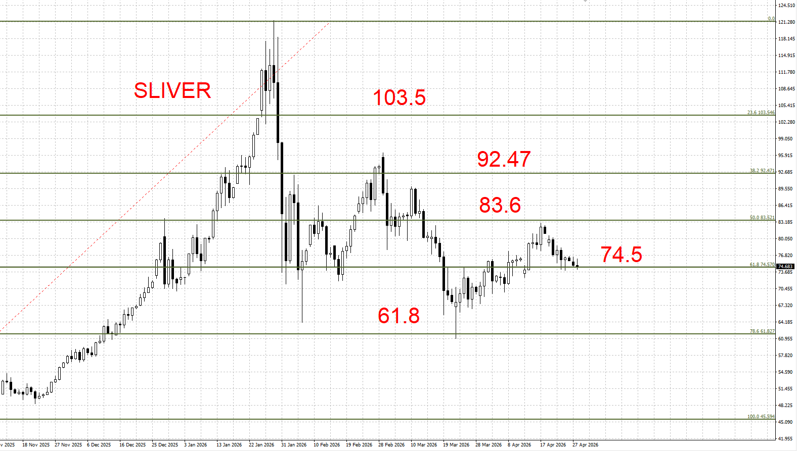 近期银价整体行情延续震荡下跌为主,关注74.5支撑能否顺利企稳,持有多单建议带上保本,若想尝试多单仍建议等待回落布局机会为主。