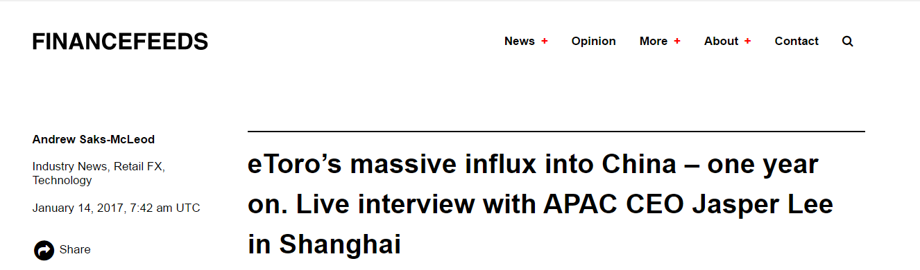 而一年之后,e投睿eToro已迅速打开中国市场,Finance feeds用“涌入”来形容这一次进军。